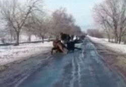 Чуркаган жылкылар унаанын үнүнөн чочуп жыгылышты